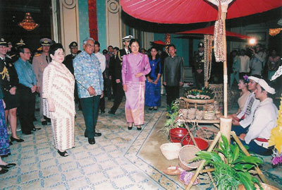 | วันพุธที่ 19 มกราคม 2548 00:00:00 | ระหว่างวันที่ 19 - 21 มกราคม พ.ศ. 2548 เสด็จฯ ทรงนำนายเอส. อาร์. นาธาน (Mr. S. R. Nathan) ประธานาธิบดีแห่งสาธารณรัฐสิงคโปร์และภริยา ไปเยี่ยมโครงการตามพระราชดำริ และสถานที่สำคัญในจังหวัดเชียงใหม่ โดยประทับแรม ณ โรแรมเชอราตันเชียงใหม่ | ![]() |