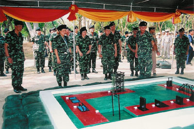 | วันศุกร์ที่ 18 มีนาคม 2548 09:40:00 | เสด็จฯ ไปทอดพระเนตรการฝึกภาคสนามของนักเรียนนายร้อยชั้นปีที่ 2 โรงเรียนนายร้อยพระจุลจอมเกล้า ประจำปีการศึกษา 2547 - 2548 ณ ศูนย์การทหารราบ อำเภอปราณบุรี จังหวัดประจวบคีรีขันธ์ | ![]() |