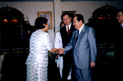 | วันอังคารที่ 26 กรกฎาคม 2548 17:30:00 | เสด็จลง แทนพระองค์ ณ อาคารชัยพัฒนา พระราชทานพระราชวโรกาสให้นายเป็ก นัมซุน (Mr. Paek Nam Sun) รัฐมนตรีว่าการกระทรวงการต่างประเทศ สาธารณรัฐประชาธิปไตยประชาชนเกาหลี เฝ้าฯ | ![]() |