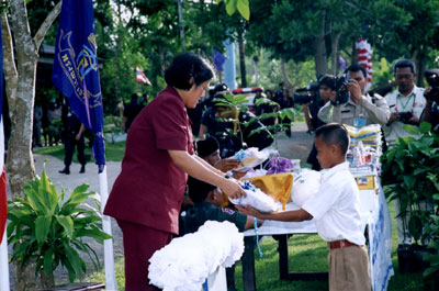 | วันพฤหัสบดีที่ 18 สิงหาคม 2548 00:00:00 | ระหว่างวันที่ 18 19 สิงหาคม 2548 เสด็จฯ ไปทรงปฏิบัติพระราชกรณีย- กิจในพื้นที่จังหวัดสุราษฎร์ธานี จังหวัดนครศรีธรรมราช และจังหวัดชุมพร ประทับแรม ณ เรือนรับรองที่ประทับ เขื่อนรัชชประภา อำเภอบ้านตาขุน จังหวัดสุราษฎร์ธานี มีพระราชกิจ ดังนี้ - ทรงเปิดอาคารสงฆ์อาพาธ สกลมหาสังฆปรินายก โรงพยาบาลไชยา - ทรงเปิดอาคารโรงเรียนกาญจนาภิเษกวิทยาลัยสุราษฎร์ธานี อำเภอไชยา - ทรงเยี่ยมโรงเรียนตำรวจตระเวนชายแดน บ้านยูงงาม หมู่ที่ 5 โรงเรียนตำรวจตระเวนชายแดน บ้านไร่ยาว หมู่ที่ 6 อำเภอบางขัน จังหวัดนครศรีธรรมราช - ทรงเยี่ยมโรงเรียนตำรวจตระเวนชายแดน บ้านสวนเพชร หมู่ที่ 15 โรงเรียนตำรวจตระเวนชายแดนสิริราษฎร์ บ้านสระขาว หมู่ที่ 16 อำเภอละแม - ทรงเยี่ยมโรงเรียนตำรวจตระเวนชายแดน บ้านห้วยเหมือง หมู่ที่ 13 อำเภอหลังสวน จังหวัดชุมพร - ทรงเยี่ยมโรงเรียนตำรวจตระเวนชายแดน บ้านควนสามัคคี หมู่ที่ 13 อำเภอสวี จังหวัดชุมพร | ![]() |