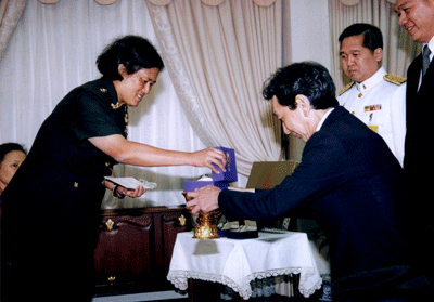 | วันศุกร์ที่ 14 ตุลาคม 2548 17:00:00 | เสด็จลง ณ อาคารชัยพัฒนา พระราชทานพระราชวโรกาสให้นายภูริช มหาดำรงกุล กรรมการผู้จัดการ บริษัท เมืองทองไซโก จำกัด นายทาคาชิ วาคูยามา (Mr. Takashi Wakuyama) ผู้บริหารสูงสุด บริษัท ไซโก ว็อท์ช คอร์ปอเรชั่น จำกัด ประเทศญี่ปุ่น เฝ้าฯ ทูลเกล้าฯ ถวายนาฬิกาไซโกรุ่นพิเศษ ซึ่งจัดทำขึ้นในโอกาสที่ทรงเจริญพระชนมายุ ๕๐ พรรษา | ![]() |