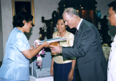 | วันศุกร์ที่ 28 ตุลาคม 2548 17:00:00 | เสด็จออกแทนพระองค์ ณ อาคารชัยพัฒนา พระราชทานพระราชวโรกาสให้นางข้าวทิพย์ โพแตง กรรมการผู้จัดการ บริษัท เมทโธรห์มสยาม จำกัด พร้อมคณะ เฝ้าฯ น้อมเกล้าฯ ถวายเครื่อง METROHM RANCIMAT ๗๔๓ (เครื่องวิเคราะห์อายุ ความคงตัวของน้ำมัน) เพื่อใช้ในกิจการโครงการส่วนพระองค์ สวนจิตรลดา | ![]() |
