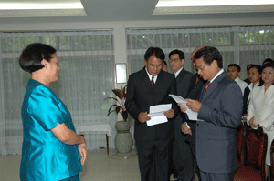 | วันอาทิตย์ที่ 07 พฤษภาคม 2549 16:00:00 | เสด็จออก ณ วังสระปทุม พระราชทานพระราชวโรกาสให้พลเอก วาภิรมย์ มนัสรังษี ประธานคณะกรรมการดำเนินการโครงการโรงเรียนพระราชทานในราชอาณาจักรกัมพูชา นำคณะนักเรียนทุนพระราชทานโครงการโรงเรียนพระราชทานในราชอาณาจักรกัมพูชาจากวิทยาลัยกำปงเฌอเตียล ราชอาณาจักรกัมพูชา รุ่นที่ ๑ ปีการศึกษา ๒๕๔๘ และรุ่นที่ ๒ ปีการศึกษา ๒๕๔๙ เฝ้าฯ รับพระราชทานพระราโชวาทก่อนเข้ารับการศึกษาในสถาบันการศึกษาของประเทศไทย | ![]() |