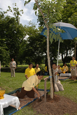 | วันจันทร์ที่ 10 กรกฎาคม 2549 10:00:00 | เสด็จลง ณ บริเวณพระตำหนัก เรือนต้น สวนจิตรลดา ทรงปลูกต้นไม้ร่วมกับคณาจารย์และนิสิต คณะวนศาสตร์ ชั้นปีที่ ๑ มหาวิทยาลัยเกษตรศาสตร์ | ![]() | |