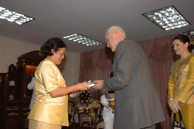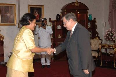 | วันจันทร์ที่ 17 กรกฎาคม 2549 10:00:00 | เสด็จออก ณ อาคารชัยพัฒนา พระราชทานพระราชวโรกาสให้นายอุลริก เฮลเว-ลาร์เซ็น (Mr. Ulrik Helweg-Larsen) เอกอัครราชทูตราชอาณาจักรเดนมาร์กประจำประเทศไทย ถิ่นพำนัก ณ กรุงเทพมหานคร และภริยา เข้าเฝ้า ฯ เพื่อกราบบังคมทูลลา ในโอกาสพ้นจากหน้าที่ | ![]() | |