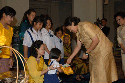 - พลอากาศตรี กำธน สินธวานนท์ รองประธานกรรมการมูลนิธิสายใจไทย ในพระบรมราชูปถัมภ์ นำนายวิชัย รักศรีอักษร ประธานกรรมการบริหาร และคณะกรรมการกลุ่มบริษัท คิง เพาเวอร์ เฝ้าฯ ทูลเกล้าฯ ถวายเงิน โดยเสด็จพระราชกุศลตามพระราชอัธยาศัย และเพื่อสมทบทุนมูลนิธิสายใจไทย ในพระบรมราชูปถัมภ์ - คณะกรรมการร้านต่าง ๆ ที่ร่วมออกร้านในงานกาชาดประจำปี ๒๕๔๙ เฝ้าฯ ทูลเกล้าฯ ถวายเงินรายได้จากการออกร้านงานกาชาดประจำปี ๒๕๔๙ ดังนี้ เบญจมราชาลัยสมาคม ในพระบรม- ราชินูปถัมภ์ - นายสุรชัย ดนัยตั้งตระกูล เลขาธิการสมาคมธรรมศาสตร์ ในพระบรมราชูปถัมภ์ นำคณะกรรมการจัดการแข่งขันกอล์ฟประเพณีจุฬา - ธรรมศาสตร์ เฝ้าฯ ทูลเกล้าฯ ถวายเงินรายได้จากการจัดการแข่งขันดังกล่าว เพื่อสมทบทุนมูลนิธิอานันทมหิดล - พันเอก เอกรัตน์ ช้างแก้ว หัวหน้ากองข่าว มณฑลทหารบกที่ ๑๑ ถนนพระราม ๕ เขตดุสิต กรุงเทพมหานคร นำนางเชื้อ กันศรี และนางจรูญ ช้างแก้ว เฝ้าฯ ทูลเกล้าฯ ถวายเงิน โดยเสด็จพระราชกุศลตามพระราชอัธยาศัย - นายมณิชย์ จุลสุคนธ์ พร้อมด้วยครอบครัว เฝ้าฯ ทูลเกล้าฯ ถวายเงิน โดยเสด็จพระราชกุศลตามพระราชอัธยาศัย และหนังสือ "นานาสาระในขุนช้างขุนแผน" | ![]() |