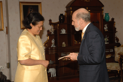 | วันจันทร์ที่ 09 ตุลาคม 2549 15:00:00 | เสด็จลง ณ อาคารชัยพัฒนา พระราชทานพระราชวโรกาสให้นายจูเอา อันตอนีอู ดา ซิลเวย์รา ดือ ลีมา ปีเมนแตล (Mr. Joao Antonio da Silveira de Lima Pimentel) เอกอัครราชทูตสาธารณรัฐโปรตุเกสประจำประเทศไทย เฝ้า ฯ เพื่อกราบบังคมทูลลา ในโอกาสที่จะพ้นจากหน้าที่ | ![]() |