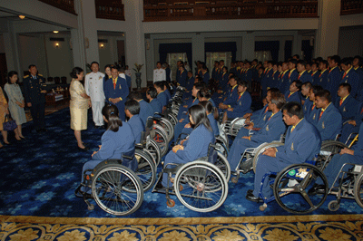 -นายสุวิทย์ ยอดมณี รัฐมนตรีว่าการกระทรวงท่องเที่ยวและกีฬา นำคณะนักกีฬาคนพิการทีมชาติไทย และเจ้าหน้าที่ เฝ้า ฯ รับพระราชทานพรก่อนเดินทางไปเข้าร่วมการแข่งขันกีฬาเฟสปิกเกมส์ ครั้งที่ ๙ ซึ่งจะจัดขึ้นระหว่างวันที่ ๒๒ พฤศจิกายน - ๒ ธันวาคม ๒๕๔๙ ณ ประเทศมาเลเซีย |  |
