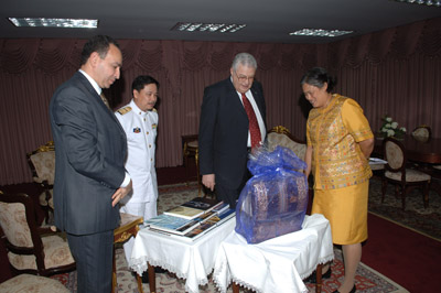 | วันศุกร์ที่ 12 มกราคม 2550 16:30:00 | เสด็จลง ณ อาคารชัยพัฒนา สวนจิตรลดา พระราชทานพระราชวโรกาสให้นายนภดล เทพพิทักษ์ เอกอัครราชทูตไทยประจำสาธารณรัฐอาหรับอียิปต์ นำนายชารีฟ จาลาล (Mr. Sherif Galal) ประธานและประธานเจ้าหน้าที่บริหารสายการบินอียิปต์แอร์ และนายโมฮาเมด อัชราฟ โมฮาเมด กามัล เอล โคลี (Mr. Mohamed Ashraf Mohamed Kamal El Kholy) เอกอัครราชทูตสาธารณรัฐอาหรับอียิปต์ประจำประเทศไทย เฝ้า ฯ ทูลเกล้า ฯ ถวายหนังสือกราบบังคมทูลเชิญเสด็จ ฯ เยือนสาธารณรัฐอาหรับอียิปต์ ในปี ๒๕๕๐ | ||