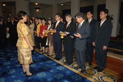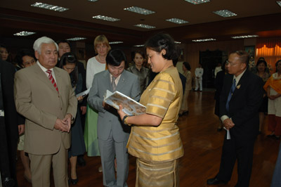 - นางพูนศรี ทองไข่มุกต์ ที่ปรึกษาโครงการตามพระราชดำริ สมเด็จพระเทพรัตนราชสุดา ฯ สยามบรมราชกุมารี นำคณะนักศึกษา พร้อมด้วยวิทยากร และคณะผู้จัดการโครงการความร่วมมือพัฒนาคุณภาพชีวิตเด็กและเยาวชนในสาธารณรัฐมองโกเลีย เข้าเฝ้า ฯ ในโอกาสที่จัดให้มีการ ศึกษาดูงาน แลกเปลี่ยนความรู้ รูปแบบการส่งเสริม การจัดอาหารให้กับเด็กในโรงเรียน สำหรับส่งเสริมงานด้านโภชนาการ และสุขภาพอนามัยของนักเรียนในสาธารณรัฐมองโกเลีย ระหว่างวันที่ ๒๑-๒๗ มกราคม ๒๕๕๐ ณ สำนักงานโครงการสมเด็จพระเทพรัตนราชสุดา ฯ สยามบรมราชกุมารี และจังหวัดราชบุรี |  |
