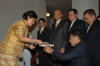 ๑. คณะอาจารย์ และสโมสรนักศึกษา บัณทิตวิทยาลัย เข้าเฝ้า ฯ ทูลเกล้า ฯ ถวายเงิน เพื่อสมทบทุนมูลนิธิชัยพัฒนา