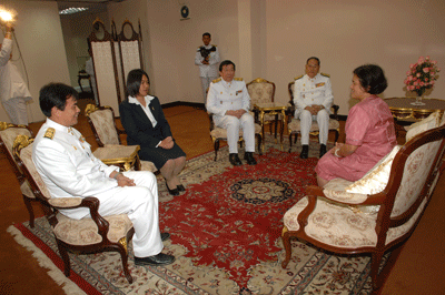 | วันพฤหัสบดีที่ 26 เมษายน 2550 16:00:00 | เสด็จออกแทนพระองค์ พระราชทานพระราชวโรกาสให้ นายอำพล เสนาณรงค์ ประธานคณะกรรมการแผนกเกษตรศาสตร์ มูลนิธิอานันทมหิดล พร้อมด้วยคณะ นำนางสาวนิสา เหล็กสูงเนิน ผู้ได้รับพระราชทานทุนมูลนิธิอานันทมหิดลแผนกเกษตรศาสตร์ ประจำปี ๒๕๔๙ เข้าเฝ้า ฯ เ้พื่อกราบถวายบังคมลา ไปศึกษาต่อระดับปริญญาเอก สาขาวนศาสตร์ เน้นทางด้านนิเวศสรีรวิทยาความเครียดของพืช (Plant Street Ecophysiology) ณ มหาวิทยาลัยยูทาห์ สหรัฐอเมริกา | ![]() | |