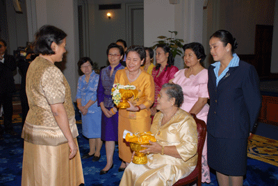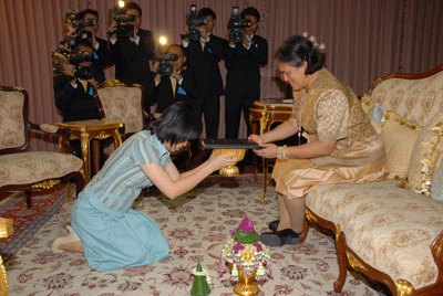 - นางสมศรี ธรรมสารโสภณ ผู้อำนวยการโรงเรียนสอนภาษาอังกฤษ "คุณครูสมศรี" พร้อมคณะ เข้าเฝ้า ฯ