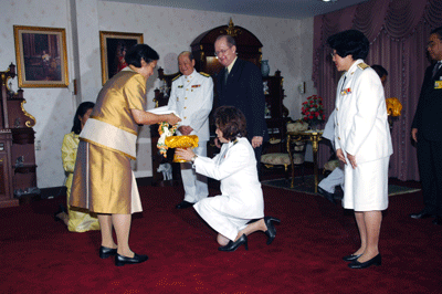 | วันจันทร์ที่ 09 กรกฎาคม 2550 10:30:00 | ต่อจากนั้น ณ อาคารชัยพัฒนา พระราชทานพระราชวโรกาสให้นายวิจิตร ศรีสอ้าน รัฐมนตรีว่าการกระทรวงศึกษาธิการ นำนายเชลดอน แชฟเฟอร์ (Mr. Sheldon Shaeffer) ผู้อำนวยการสำนักงานยูเนสโก กรุงเทพมหานคร และคณะ เข้าเฝ้า ฯ ทูลเกล้า ฯ ถวายหนังสือ "๖๐ Women Contributing to the ๖๐ Years" ซึ่งองค์การยูเนสโก ได้จัดพิมพ์หนังสือเล่มดังกล่าวเพื่อเป็นส่วนหนึ่งของการฉลองวาระครบรอบ ๖๐ ปี ของการก่อตั้งองค์การ ฯ ภายใต้แนวคิด "ความเป็นเอกภาพและความหลากหลาย" | ![]() | |