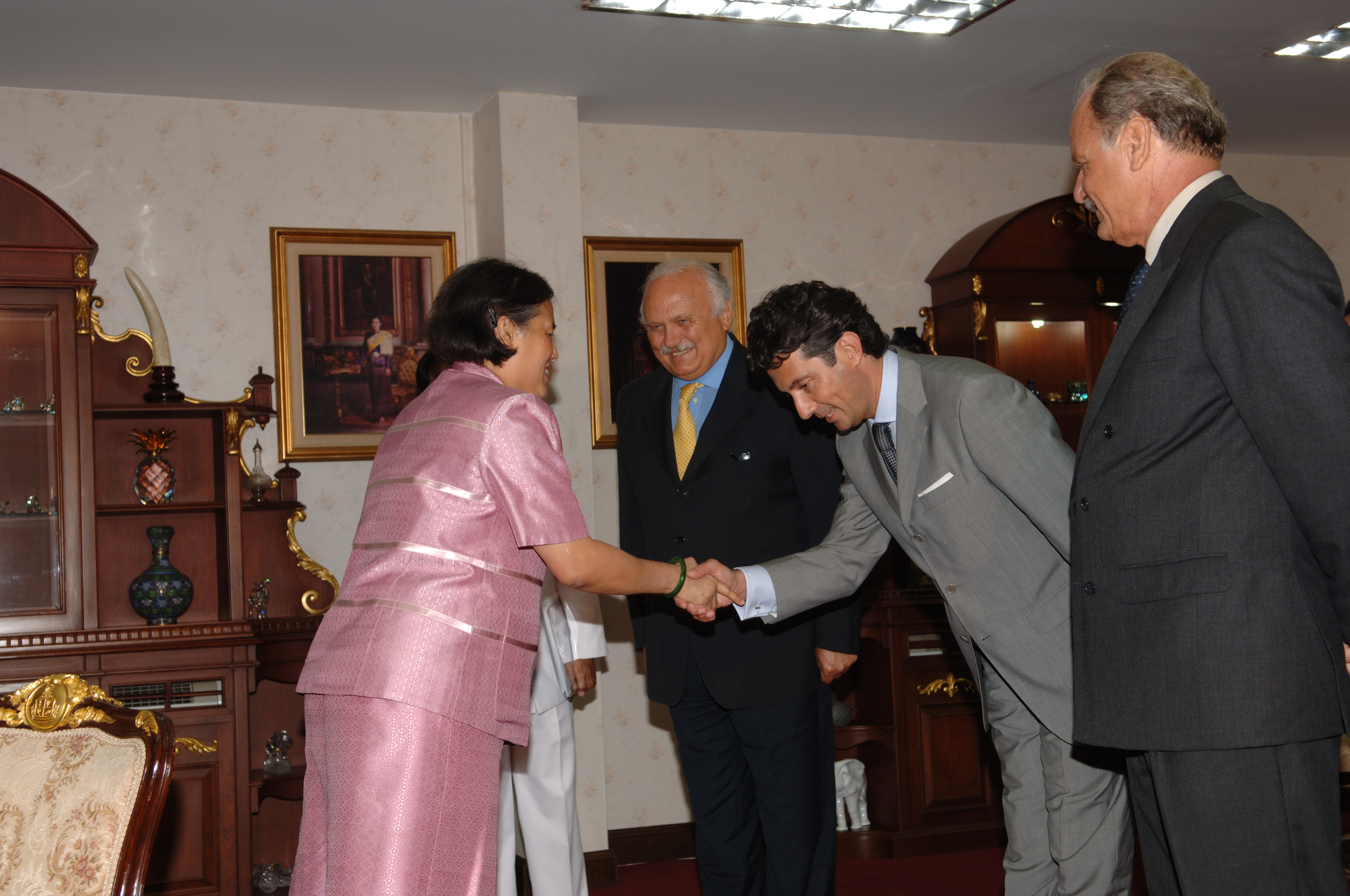 '.5.' | วันอังคารที่ 17 กรกฎาคม 2550 17:00:00 | เสด็จลง ณ อาคารชัยพัฒนา สวนจิตรลดา พระราชทานพระราชวโรกาสให้นายกุลกุมุท สิงหรา ณ อยุธยา อธิบดีกรมยุโรป กระทรวงการต่างประเทศ นำนายคลาวดิโอ โมเรโน่ (Mr. Claudio Moreno) เอกอัครราชทูตประจำกระทรวงการต่างประเทศอิตาลี ซึ่งได้รับการแต่งตั้งให้เป็นผู้แทนพิเศษของรัฐบาลอิตาลี นายอันเดรอา มาซคาเร็ตติ (Mr.Andrea Mascaretti) รองนายกเทศมนตรีเมืองมิลาน และกรรมาธิการด้านนโยบายการสร้างงานและการจ้างงาน และนายอิกนาซีโอ ดี ปาเช (Mr. Ignazio Di Pace) เอกอัครราชทูตสาธารณรัฐอิตาลีประจำประเทศไทย เฝ้า ฯ ทูลเกล้า ฯ ถวายหนังสือกราบบังคมทูลเชิญเสด็จ ฯ ไปทรงร่วมพิธีเปิดเทศกาลโอเปร่า ณ โรงละครลา สกาลา เมืองมิลาน สาธารณรัฐอิตาลี |  |