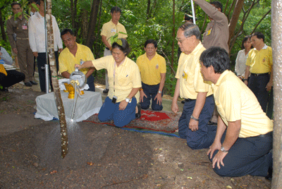 เสด็จลง ณ บริเวณเนินสวนพฤกษศาสตร์ โรงเรียนจิตรลดา ทรงปลูกต้นไม้ร่วมกับนิสิตคณะวนศาสตร์ ชั้นปีที่ ๑ มหาวิทยาลัยเกษตรศาสตร์ เนื่องในเทศกาลเข้าพรรษา