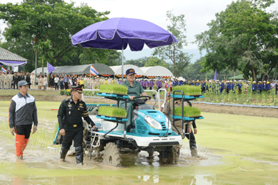 เสด็จฯ ไปทรงดำนา ณ แปลงสาธิตการเกษตร โรงเรียนนายร้อยพระจุลจอมเกล้า อำเภอเมืองนครนายก จังหวัดนครนายก