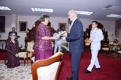 | วันอังคารที่ 16 กันยายน 2557 09:30:00 | ต่อจากนั้น พระราชทานพระราชวโรกาสให้ นายเจมส์ โจเซฟ ไวส์ (Mr.James Joseph Wise) เอกอัครราชทูตเครือรัฐออสเตรเลีย ประจำประเทศไทย เฝ้าฯ กราบบังคมทูลลา ในโอกาสที่พ้นจากหน้าที่ | ![]() | |