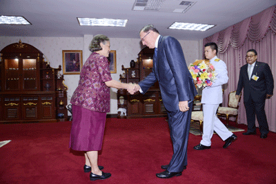 | วันอังคารที่ 16 กันยายน 2557 09:00:00 | พระบาทสมเด็จพระเจ้าอยู่หัว ทรงพระกรุณาโปรดเกล้าฯ ให้เสด็จลงแทนพระองค์ ณ อาคารชัยพัฒนา สวนจิตรลดา พระราชทานพระราชวโรกาสให้ นายอะเล็กซานเดอร์ มารียาซอฟ (Dr.Alexander Mariyasov) เอกอัครราชทูตสหพันธรัฐรัสเซียประจำประเทศไทย เฝ้าฯ กราบบังคมทูลลา ในโอกาสที่พ้นจากตำแหน่งหน้าที่ | ![]() |