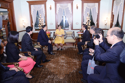 | วันศุกร์ที่ 26 กันยายน 2557 18:00:00 | เสด็จออก ณ วังสระปทุม พระราชทานพระราชวโรกาสให้นายจู ซั่นลู่ (Mr. Zhu Shanlu) เลขาธิการพรรคคอมมิวนิสต์ มหาวิทยาลัยปักกิ่ง สาธารณรัฐประชาชนจีน และคณะ เข้าเฝ้าฯ ในโอกาสเดินทางเยือนประเทศไทย | ![]() |