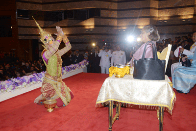 | วันพฤหัสบดีที่ 06 พฤศจิกายน 2557 19:00:00 | สมเด็จพระนางเจ้าฯ พระบรมราชินีนาถ ทรงพระกรุณาโปรดเกล้าฯ ให้เสด็จฯ แทนพระองค์ ไปทอดพระเนตรการแสดงโขน เรื่อง รามเกียรติ์ ชุดศึกอินทรชิต ตอน นาคบาศ รอบปฐมทัศน์ ณ หอประชุมใหญ่ ศูนย์วัฒนธรรมแห่งประเทศไทย เขตห้วยขวาง | ![]() |