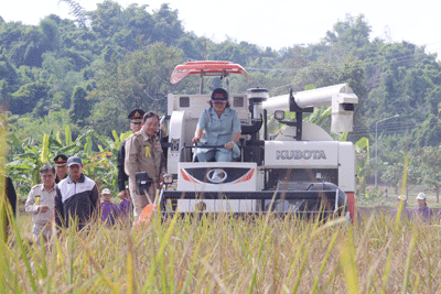 เสด็จฯ ไปทรงเกี่ยวข้าว ณ แปลงสาธิต โรงเรียนนายร้อยพระจุลจอมเกล้า อำเภอเมืองนครนายก จังหวัดนครนายก