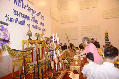 | วันอาทิตย์ที่ 30 พฤศจิกายน 2557 09:00:00 | เสด็จฯ ไปทรงเป็นประธานพิธีไหว้ครูดนตรีไทย ของชมรมดนตรีไทย สโมสรนิสิตจุฬาลงกรณ์มหาวิทยาลัย ประจำปีการศึกษา ๒๕๕๗ ณ อาคารจามจุรี ๙ จุฬาลงกรณ์มหาวิทยาลัย เขตปทุมวัน | ![]() |