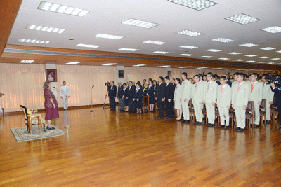 | วันอังคารที่ 16 ธันวาคม 2557 16:00:00 | เสด็จลง ณ อาคารชัยพัฒนา สวนจิตรลดา พระราชทานพระราชวโรกาสให้ศาสตราจารย์ นายแพทย์จรัส สุวรรณเวลา รองประธานมูลนิธิส่งเสริมโอลิมปิกวิชาการและพัฒนามาตรฐานวิทยาศาสตร์ศึกษา ในพระอุปถัมภ์ สมเด็จพระเจ้าพี่นางเธอ เจ้าฟ้ากัลยาณิวัฒนา กรมหลวงนราธิวาสราชนครินทร์ นำนักเรียนซึ่งเป็นผู้แทนประเทศไทยที่กลับจากการแข่งขันดอลิมปิกวิชาการระหว่างประเทศ (คณิตศาสตร์ คอมพิวเตอร์ เคมี ชีววิทยา ฟิสิกส์ ดาราศาสตร์ และฟิสิกส์ดาราศาสตร์โลกและอวกาศ Asian Science Camp และวิทยาศาสตร์ระดับมัธยมศึกษาตอนต้น) ประจำปี ๒๕๕๗ ที่สาธารณรัฐอาร์เจนตินา และผู้ที่เกี่ยวข้อง เข้าเฝ้าฯ กราบบังคมทูลรายงานผลการแข่งขันฯ และรับพระราชทานพระราโชวาท เพื่อความเป็นสิริมงคล | ![]() | |