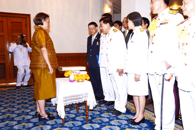 ๑๐. ศาสตราจารย์ นายแพทย์พูนพิศ อมาตยกุล ประธานคณะอนุกรรมการส่งเสริมกิจกรรมดนตรีไทย พร้อมด้วยผู้บริหารกระทรวงการพัฒนาสังคมและความมั่นคงของมนุษย์ และธนาคารกรุงเทพ จำกัด (มหาชน) และผู้ที่เกี่ยวข้องในการจัดการประกวดดนตรีไทย ระดับมัธยมศึกษา “ประลองเพลง ประเลงมโหรี” ครั้งที่ ๒๘ ปีพุทธศักราช ๒๕๕๖ ชิงถ้วยพระราชทานสมเด็จพระเทพรัตนราชสุดา ฯ สยามบรมราชกุมารี เข้าเฝ้าฯ กราบบังคมทูลรายงานผลการจัดการประกวดฯ และในโอกาสนี้ เยาวชนที่ชนะเลิศการประกวดประเภทวง และเดี่ยว และผู้สนับสนุนการจัดการประกวดฯ เข้าเฝ้าฯ รับพระราชทานถ้วยรางวัลชนะเลิศ เกียรติบัตร และเข็ม
