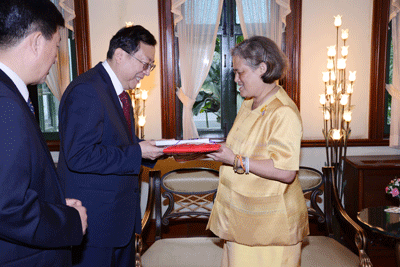 | วันจันทร์ที่ 09 มีนาคม 2558 11:00:00 | เสด็จออก ณ วังสระปทุม พระราชทานพระราชวโรกาสให้ศาสตราจารย์ห่าว ผิง (Professor Hao Ping) รัฐมนตรีช่วยว่าการกระทรวงศึกษาธิการ สาธารณรัฐประชาชนจีน และคณะ จำนวนรวม ๕ คน เข้าเฝ้าฯ ในโอกาสเดินทางเยือนประเทศไทย ในโอกาสนี้ พระราชทานเลี้ยงอาหารกลางวันแก่คณะผู้เข้าเฝ้าฯ ด้วย | ![]() | |
