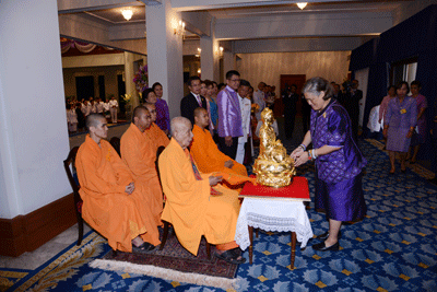 | วันศุกร์ที่ 10 เมษายน 2558 17:00:00 | พระบาทสมเด็จพระเจ้าอยู่หัว ทรงพระกรุณาโปรดเกล้าฯ ให้เสด็จลงแทนพระองค์ ณ ศาลาดุสิดาลัย สวนจิตรลดา พระราชทานพระราชวโรกาสให้พระมหาคณานัมธรรมปัญญาธิวัตร (เจริญ กิ๊นเจี๊ยว) เจ้าคณะใหญ่อนัมนิกายแห่งประเทศไทย และคณะ ประกอบด้วย พระสงฆ์อนัมนิกาย และฆราวาส เฝ้าและเข้าเฝ้าฯ ถวายและน้อมเกล้าฯ ถวายพระยูไลไภษัชยคุรุพุทธเจ้า ปางสมาธิ เนื้อเงินสัมฤทธิ์ และถวายและทูลเกล้าฯ ถวายเงินของนางซิ้วง้อ พรสุขสว่าง และเงินบริจาคของพุทธศาสนิกชนโดยเสด็จพระราชกุศลตามพระราชอัธยาศัย เนื่องในโอกาสพระราชพิธีมหามงคลเฉลิมพระชนมพรรษา ๗ รอบ ๕ ธันวาคม ๒๕๕๔ ต่อจากนั้น พระราชทานพระราชวโรกาสให้คณะบุคคลต่างๆ จำนวน ๑๔ คณะ เข้าเฝ้าฯ ดังนี้ ต่อจากนั้น เสด็จลง ณ อาคารชัยพัฒนา สวนจิตรลดา พระราชทานพระราชวโรกาสให้คณะบุคคลต่างๆ จำนวน ๒ คณะ เข้าเฝ้าฯ ดังนี้ | ![]() | |
