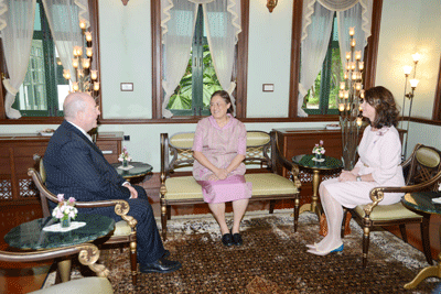 | วันจันทร์ที่ 06 กรกฎาคม 2558 12:00:00 | เสด็จลง ณ วังสระปทุม พระราชทานพระราชวโรกาสให้นายรอล์ฟ เพเทอร์ กอทท์ฟรีด ชุลเซอ (Mr. Rolf Peter Gottfried Schulze) เอกอัครราชทูตสหพันธ์สาธารณรัฐเยอรมนีประจำประเทศไทย เข้าเฝ้าฯ กราบบังคมทูลลาในโอกาสที่จะพ้นจากหน้าที่ ในโอกาสนี้ นางเพโทรเนลลา มาเรีย แคทรีนา ชุลเซอ (Mrs. Petronella Maria Catharina Schulze) ภริยาเอกอัครราชทูตฯ ร่วมเข้าเฝ้าฯ ด้วย | ![]() | |