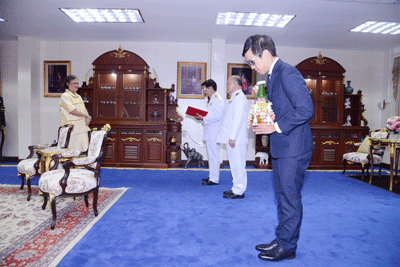 | วันพุธที่ 15 กรกฎาคม 2558 15:00:00 | พระบาทสมเด็จพระเจ้าอยู่หัว ทรงพระกรุณาโปรดเกล้าฯ ให้เสด็จลงแทนพระองค์ ณ อาคารชัยพัฒนา สวนจิตรลดา พระราชทานพระราชวโรกาสให้ศาสตราจารย์ธานินทร์ กรัยวิเชียร ประธานกรรมการแผนกธรรมศาสตร์ มูลนิธิอานันทมหิดล ศาสตราจารย์สมคิด เลิศไพฑูรย์ อธิการบดีมหาวิทยาลัยธรรมศาสตร์ และศาสตราจารย์พิเศษจิรนิติ หะวานนท์ เลขานุการแผนกธรรมศาสตร์ นำนายตะวัน มานะกุล ผู้ได้รับพระราชทานทุนมูลนิธิอานันทมหิดล แผนกธรรมศาสตร์ ประจำปี ๒๕๕๗ เข้าเฝ้าฯ กราบถวายบังคมลาไปศึกษาต่อระดับปริญญาโท-เอก สาขาทฤษฎีการเมือง ที่วิทยาลัยเศรษฐศาสตร์และรัฐศาสตร์แห่งลอนดอน สหราชอาณาจักร | ![]() |