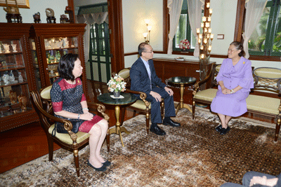 | วันพฤหัสบดีที่ 30 กรกฎาคม 2558 11:15:00 | เสด็จออก ณ วังสระปทุม พระราชทานพระราชวโรกาสให้นางฉั่ว ซิ่ว ซาน (Mrs. Chua Siew San) เอกอัครราชทูตสาธารณรัฐสิงคโปร์ประจำประเทศไทย นำนายจอร์จ เยียว (Mr. George Yeo) อธิการบดีมหาวิทยาลัยนาลันทา สาธารณรัฐอินเดีย เข้าเฝ้าฯ กราบบังคมทูลรายงานการดำเนินงานของมหาวิทยาลัยฯ ในโอกาสนี้ | ![]() | |
