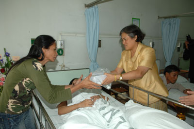 | วันจันทร์ที่ 01 มกราคม 2550 16:00:00 | เสด็จ ฯ ไปทรงเยี่ยมผู้ที่ได้รับบาดเจ็บจากเหตุการณ์ลอบวางระเบิดในกรุงเทพมหานครในคืนวันอาิทิตย์ที่ ๓๑ ธันวาคม พ.ศ. ๒๕๔๙ ณ โรงพยาบาลราชวิถี และโรงพยาบาลจุฬาลงกรณ์ | ![]() |