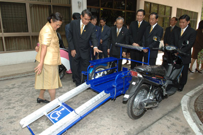 | วันศุกร์ที่ 02 กุมภาพันธ์ 2550 09:50:00 | เสด็จลง ณ อาคารชัยพัฒนา พระราชทานพระราชวโรกาสให้ศาสตราจารย์ไพรัช ธัชยพงษ์ รองประธานคณะกรรมการเทคโนโลยีสารสนเทศตามพระราชดำริ สมเด็จพระเทพรัตนราชสุดา ฯ สยามบรมราชกุมารี นำคณะผู้บริหาร บริษัทไทยยามาฮ่ามอเตอร์ จำกัด เฝ้า ฯ น้อมเกล้า ฯ ถวายรถจักรยานยนต์ยามาฮ่า รุ่นนูโว MX จำนวน ๒ คัน และทูลเกล้า ฯ ถวายเงิน สำหรับจัดทำที่นั่งพ่วงข้างรถจักรยานยนต์ ดังกล่าว เพื่อพระราชทานแก่เด็กหญิงตอยยีบะห์ สือแม และเด็กชาย อับดุลเลาะห์ บาราหาแม | ![]() | |