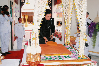 | วันอาทิตย์ที่ 01 พฤษภาคม 2548 07:00:00 | เสด็จฯ ไปทรงร่วมในพิธีเก็บอัฐิและอังคารคุณพุ่ม เจนเซน ณ เมรุหลวงหน้าพลับพลาอิศริยาภรณ์ วัดเทพศิรินทราวาส เขตป้อมปราบศัตรูพ่าย และเสด็จฯ ไปทรงร่วมบรรจุโกศอัฐิและอังคาร ณ สุสานหลวงวัด ราชบพิธสถิตมหาสีมาราม เขตพระนคร | ![]() | |