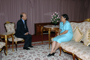 | วันศุกร์ที่ 02 มิถุนายน 2549 15:00:00 | เสด็จลง ณ อาคารชัยพัฒนา พระราชทานพระราชวโรกาสให้คณะบุคคลต่างๆ เฝ้าฯ ดังต่อไปนี้ - นางแคโรไลน์ มิลเลอร์ (Mrs. Carolyn Miller) ประธานสถาบันฤดูร้อนว่าด้วยภาษานานาชาติ สหรัฐอเมริกา พร้อมคณะ และเจ้าหน้าที่ระดับสูงของกระทรวงศึกษาธิการ เฝ้าฯ กราบบังคมทูลรายงานการดำเนินงานของสถาบันในการส่งเสริมการเรียนรู้หนังสือโดยให้ความช่วยเหลือด้านวิชาการเกี่ยวกับภาษา และการรู้หนังสือในประเทศไทย และประเทศอื่นๆ - ศาสตราจารย์คลินิก นายแพทย์ สุพัฒน์ วาณิชย์การ เลขาธิการมูลนิธิรางวัลสมเด็จเจ้าฟ้ามหิดล ในพระบรมราชูปถัมภ์ นำผู้ให้การสนับสนุนกิจการของมูลนิธิฯ และผู้บริจาคเงินสมทบทุนมูลนิธิฯ เฝ้าฯ รับพระราชทานของที่ระลึก และทูลเกล้าฯ ถวายเงินเพื่อสมทบทุนมูลนิธิฯ | ![]() | |