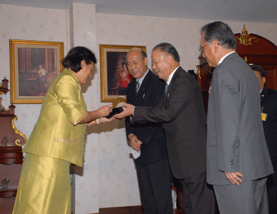 - คณะกรรมการร้านสมาคมนักศึกษาเก่ามหาวิทยาลัยเทคโนโลยีพระจอมเกล้าธนบุรี ในพระบรม-ราชูปถัมภ์ เข้าเฝ้า ฯ ทูลเกล้า ฯ ถวายเงินรายได้จากการออกร้านงานกาชาด ประจำปี ๒๕๕๐ เพื่อบำรุงสภากาชาดไทย