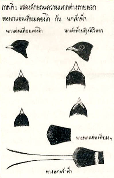 ภาพที่ 1 แสดงลักษณะความแตกต่างภายนอกของนกนางแอ่นเทียมคองโก กับนกเจ้าฟ้าฯ